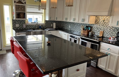 - Well-Equipped Kitchen: The fully stocked kitchen includes a full-size refrigerator and freezer, convenient appliances, and a large island that doubles as a dining area for everyone to bond over meals and activities.