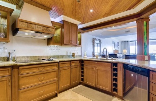 Kitchen and bathrooms remodeled / Beachfront balcony perfect for soaking in stunning ocean views / Classic, comfortable furniture and décor featuring relaxing neutral tones / Fully equipped kitchen with counter seating and stainless appliances / Contemporary dining table with seating for six / Master bedroom overlooks a shimmering shoreline with private balcony access / Master suite boasts a king bed, walk-in closet, and adjoining bathroom and shower / Split separate 2nd bedroom and bathroom with walk in closet / Wi-Fi, cable TV, and TVs in both the living room and guest bedroom / Personal washer and dryer, beach chairs and beach towels provided.