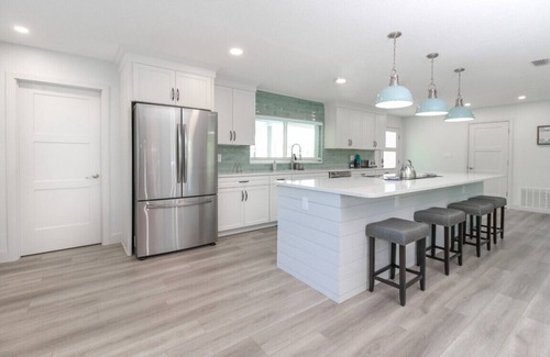 Kick back and relax in this calm, stylish space. A beautifully remodeled home with plenty of room for your family vacation. Plenty of amenities to make you feel right at home. A short walk to the beach in an area that features plenty of restaurants and shopping nearby. We have world class fishing down by the Sebastian inlet and are close to the Air Force Base and Port Canaveral.