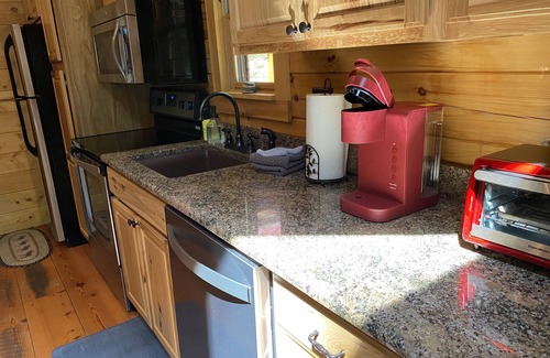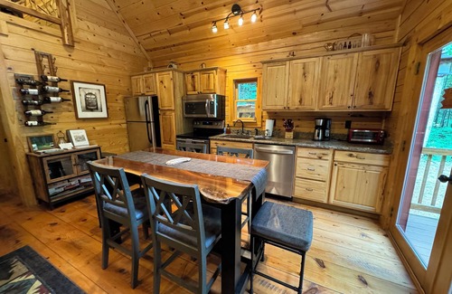*Please note that our cabin is in a very remote location. There is a place where you drive through the creek in your vehicle just before you reach the cabin. It does not require a 4 wheel drive vehicle, as it is very shallow at the crossing point, but vehicles with a higher ground clearance are recommended, such as a small, mid or full size SUV or truck. There is no cell phone reception at the cabin, however you can use your cell phone on our WIFI connection by enabling WIFI calling in your phone's settings. There is also a house phone for guests to use at no charge.