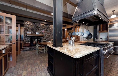 The expansive and amazing outdoor space includes a private hot tub, BBQ grill, fire pit, tons of seating, outdoor dining table, a seasonally (fall/summer) stocked pond (catch and release only) and a bridge to the small island that is part of the property - all of which is along the river. The home is perfect for groups as well as multiple families with tons of square footage, mutliple living spaces and a full bathroom for each bedroom.