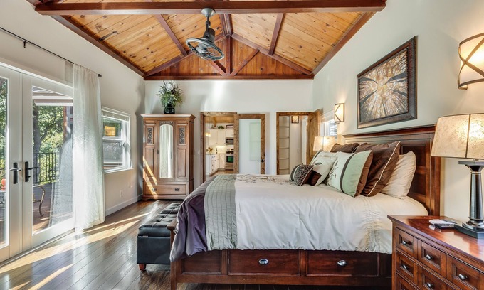 If you'd rather stay in enjoy a warm night with a glass of wine in the back patio, sleep with the window open listening to the rustling of Uvas Creek which runs year round!