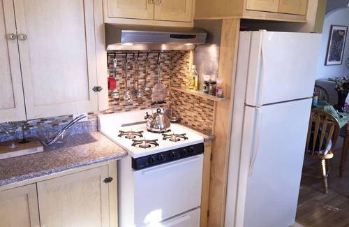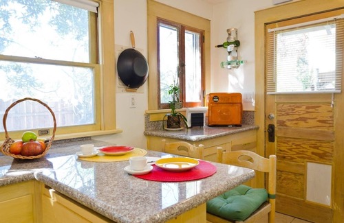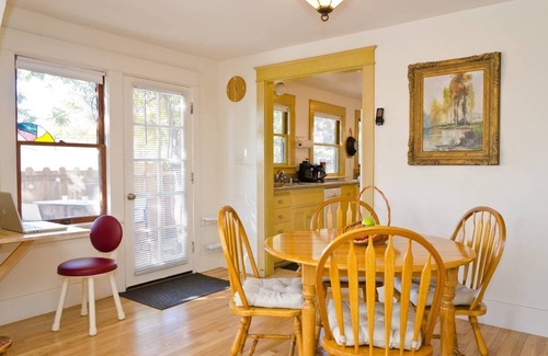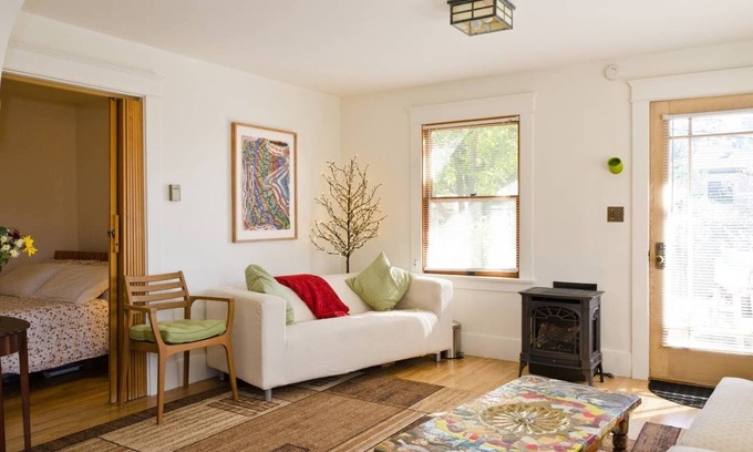Unique, one bedroom turn of the century home with a cast Iron fireplace, 55 inch Smart TV, spacious patio , living room & dining room, washer and dryer,and high-speed Wi-Fi. Accommodates up to 4 guests using the sofa bed. The bedroom is small but the apartment is spacious. The kitchen is fully equipped and has a breakfast nook for convenience. I love this location and put a lot of extra time into the details that create this unique living space. The apartment is full of cheerful light. The property dates back to the 1800s when horse and buggy was the only form of transportation.