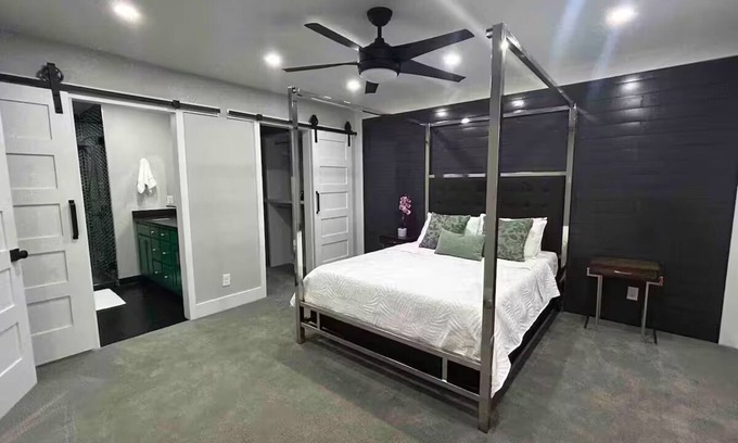 Main home has two bedrooms with 2.5 bathrooms. Backyard casita has a large room with workspace/play are. Small attached workout area with dry sauna and 2 bunk beds. Please note guests sleeping in the bunk bed room will need to come to main home to access bathrooms. Outside casita has no attached bathroom.