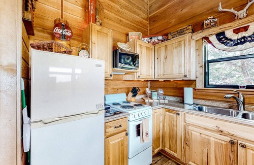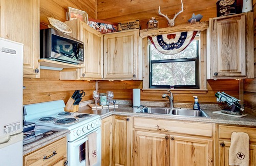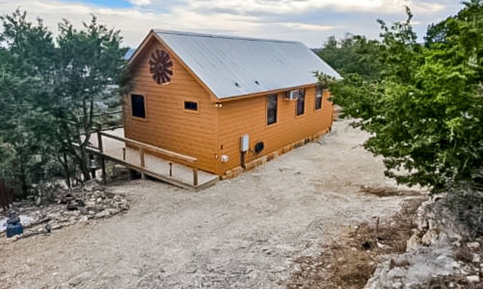 Discover the beauty of the Hill Country first-hand at this gorgeous canyon-side cabin. Boasting incredible views from sunrise to sunset, this two-bedroom retreat offers convenient access to nearby attractions and downtown Fredericksburg. A 380 sq ft covered deck offers the perfect perch for enjoying the outdoors and a private gas grill sets the stage for authentic Texas barbecues. The home's 2000-foot elevation provides an unbeatable vantage point for bird-watching and provides cooler year-round temperatures relative to surrounding areas.