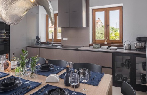 On the Istrian peninsula, north of Pula, you will find this rustic stone house in a quiet location. It has been carefully designed by the owner with a sense of design and offers bright, high-quality furnished rooms that make a very stylish impression.
