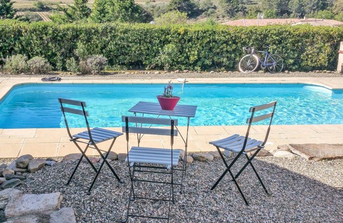 The pool with its Roman steps is located slightly below the house. Near the pool is a small covered terrace where you can enjoy a glass of fruit juice or a glass of Chinian wine, both local products.