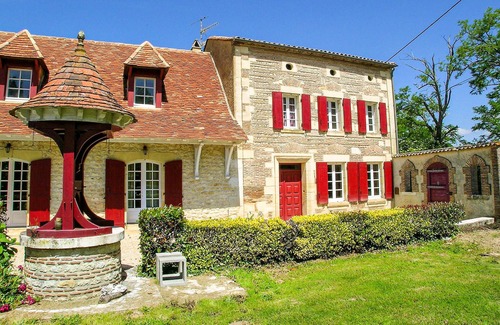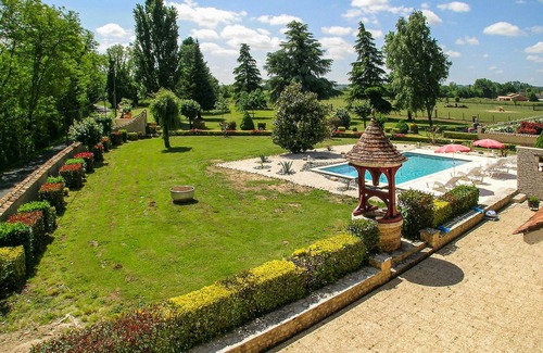 This great vacation property with pool invites you to a dream vacation in the Dordogne. The beautifully renovated eighteenth-century country house stands on a nine-hectare plot. Its spacious lawn, to which you also have access from the generously sized bedroom on the first floor, is a nice place to laze and relax. In between, you can cool off in the swimming pool surrounded by a wall. Wooden beams emphasize the charm of the accommodation, which convinces with modern and comfortable furnishings. The open gallery in the large living and dining room is not accessible. After a long and eventful excursion through the region, you will sleep well in the cozy bedrooms. Rich in history and legend, the Dordogne is also a paradise for nature lovers, and only 15 km separate you from Bergerac. This beautiful city impresses with its ramparts and harbor, and for wine lovers, the House of Wines (Maison des Vins) awaits there. Experience the wine region of Saint-Emilion (43 km) and the Château de Monbazillac (17 km). Here in the land of fortified villages, Monpazier (60 km) is also a must. The friendly and discreet landlord lives to the left of the main house and takes care of his pets: donkeys, sheep, chickens, pheasants and ducks. The animals are in an enclosure behind the property. The pool to the left of the main driveway is the landlord's private pool. This great vacation home with pool promises its guests an unforgettable vacation.