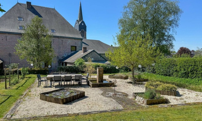 Discover the historic charm of this special holiday home in Rienne, a listed building with many authentic elements. The holiday home was built on the remains of the old castle of Rienne. Inside, the historic atmosphere is immediately noticeable through the beautiful thick walls and decoration. The living room and dining room are separated by a huge fireplace and invite you to relax on the sofa or eat together at the long table. The dining room has a coffee corner and an additional oven with grill plate, making it the meeting place for the whole family. Most of the bedrooms offer the convenience of an adjoining bathroom. The bedroom on the ground floor is furnished with a sofa bed and also serves as a library.
