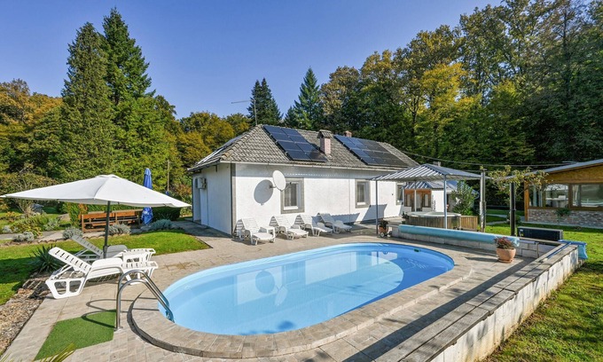 Would you like to spend your vacation in idyllic surroundings with heated pool? Then this vacation home is just right for you, surrounded by forest in the idyllic region of continental Croatia with pool and space for up to 6 people. Far away from crowds, the visually protected property offers absolute tranquility, only the chirping of birds from the nearby forest can be heard.