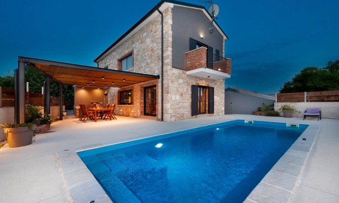 Best-rates for the Amazing home in Kanfanar starts from $431 per night with includes Pool, TV, Internet, Kitchen, Laundry, Parking, Security/Safety, Fireplace/Heating, Barbecue/Outdoor Cooking, Child Friendly with all other amenities. Perfect for Weddings is committed to ensuring every guest experiences a comfortable and extraordinary stay, whether planning a romantic getaway, a honeymoon, a pet-friendly stay, or celebrating with the entire wedding party.
