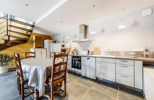 In central location of Brittany welcomes you this authentic and modern light shining cottage on two floors. Together with your loved ones you can relax here and fully enjoy your time together. The homey ambience and appealing design of the rooms create the perfect setting to get together in the living room, play games or cook delicious meals.