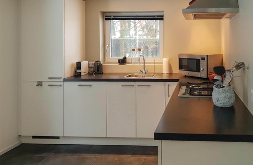 The cottage is located on a large and completely private forest property. The fully fenced property is ideal for a vacation with dogs, it also has a large lawn with a soccer goal. The cottage has a very large terrace, a nicely furnished sitting area with TV, a fully equipped kitchen, two comfortable bedrooms, a bathroom with walk-in shower and sink and a separate toilet. All rooms are located on the first floor.
