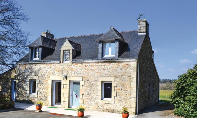 Amazing Home In Meslan With Kitchen offers accommodations in Meslan, 16 miles from Pont-Scorff Zoo and 17 miles from Val Quéven Golf Course. The property is around 18 miles from Parc des Expositions Lorient, 20 miles from Lorient Train Station, and 21 miles from Football Club Lorient. Outdoor seating is also available at the vacation home. This vacation home includes 3 bedrooms, a living room and a TV, an equipped kitchen with a dining area, and 2 bathrooms with a bath and a washing machine. Offering free private parking, this 3-star vacation home also features free Wifi. The accommodation has a fireplace. Guests can also relax in the garden. Lorient South Brittany Airport is 18 miles away.