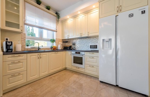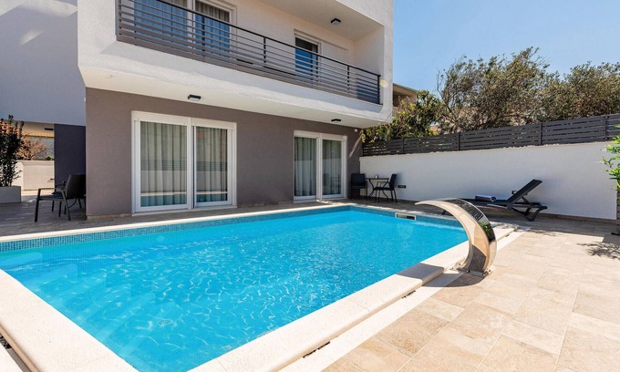 Right near Zadar you will find yourself in this ideal, large vacation home in a quiet residential area. Here you can relax on the roof terrace with great views, in the jacuzzi in the fresh air, in the pool or at the sauna - So a stay full of wellness and well-being is provided. A stylish interior rounds off the beautiful living experience.