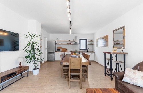 From the garden, a staircase leads to a lovely little terrace from where you enter the main living room and the fully equipped kitchen. Two bedrooms are located on the upper floor and two on the ground floor. The lower ground floor has a separate entrance and consists of 2 bedrooms and an additional living room with kitchenette, providing extra comfort and privacy for guests. The "smaller house" consists of 2 floors. The ground floor is actually a games room. There you will find a pool table, table football, a Playstation console and a telescope. A separate toilet is also located here. Upstairs there are 2 stylishly furnished bedrooms, each with its own bathroom of course. The beautiful courtyard is surrounded by trees and greenery and offers many activities. There is table tennis, goals for mini football and a hanging bowling alley. A special feature is a full-size professional beach volleyball court and a private tennis and basketball court. After you've had your fill of volleyball and other activities, you can relax in one of the hammocks, on the sun loungers and, of course, in the inviting and refreshing pool.