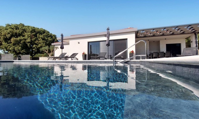 Come to Dalmatia and enjoy a fantastic stay with your friends, family and beloved four-legged friends in this modern and top equipped vacation home! Experience a comfortable time with all the amenities you desire. The modern kitchen invites you to prepare your favorite dishes, while the large TV entices you to enjoy a movie night. However, the highlight of the house is the spacious outdoor area with swimming pool. Refresh yourself in the cool water on hot days and then let the sun dry your skin while you relax on the sun loungers. In the shade, comfortable lounge furniture and a ping-pong table for sports activities are waiting for you. In the vegetable garden you may serve yourself as you wish.
