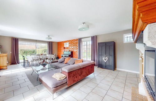 Nestled in the heart of Normandy, this vacation home has been modernized to harmoniously combine its rich heritage with modern comfort. With its numerous bedrooms, our house offers enough space for families to relax and unwind. The spacious living room is the ideal place to gather and socialize. Curl up with a good book by the fireplace or gather around the large dining table for a cozy meal. Upstairs, the fun continues in the billiards and games room. Challenge your fellow players to a game of billiards or try out one of the board games available. Laughter and friendly competition are guaranteed in this lively room.