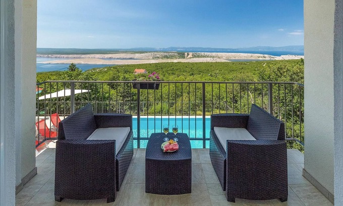 Villa Aqua is located in the small village of Smrika near the island of Krk. It can accommodate up to 8 people and offers enough space for families or groups of friends. The property offers a breathtaking view of the sea and the islands. The private pool invites you to cool off on hot summer days. There are sun loungers around the pool where you can relax. The villa offers a charming interior. The ground floor of the villa offers an open space with a fully equipped kitchen and dining area, a cosy living room and a bathroom. On the 1st floor there are 3 comfortable bedrooms and 2 bathrooms. 2 bedrooms each with a double bed and access to the shared balcony which is perfect for enjoying your morning coffee. The location of the villa offers complete privacy - a great holiday is guaranteed. Book now and enjoy Villa Aqua, located in the small village of mrika near the island of Krk. Kraljevica, the nearest beach, is only 1.2 kilometres away from the villa. Villa Aqua surprises its visitors with its location. Its magical view stretches all the way to the island of Krk. Restaurants and cafés can be found in the village of mrika. Supermarkets can be found in Crikvenica, which is about 9 kilometres from the villa. Be sure to explore the nature that surrounds Villa Aqua and enjoy the beauty it offers.