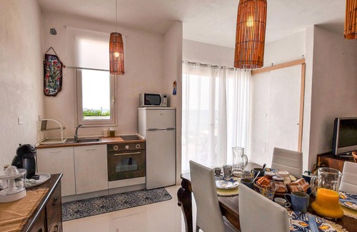Treat yourself to some time off by the sea and enjoy a wonderful vacation together with your family in this tastefully furnished house. On two floors you can make yourself comfortable in the cozy rooms and make the individually decorated rooms your second home. Look forward to artful tiled floors or the large living room where you can come together as a family. A particularly nice place to be is the balcony. Here you can gather for your vacation meals, enjoy the view of the sea and breathe in the sea air.