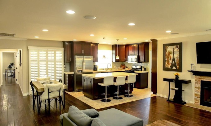 Best-rates for the Sherman Oaks house starts from $654 per night with includes Pet Friendly, Balcony/Terrace, Wellness Facilities, Fireplace/Heating, Child Friendly, Internet, Laundry, Air Conditioner, Designated Smoking Area, Bedding/Linens, Kitchen with all other amenities. Perfect for Weddings is committed to ensuring every guest experiences a comfortable and extraordinary stay, whether planning a romantic getaway, a honeymoon, a pet-friendly stay, or celebrating with the entire wedding party.