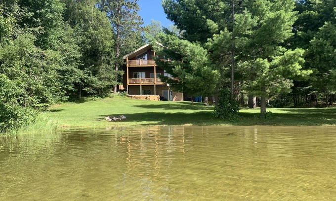 Clubhouse Lake Home is a Luxurious, Private, Peaceful & Absolutely Perfect Up North Experience! This one-of-kind lake home was hand crafted by a famous area custom builder and was his personal home, among many other unique futures - oversized logs work and a "floor" on the ceiling is his signature work.