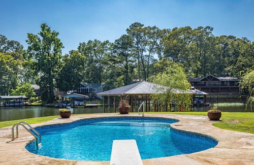 Beautiful home steps from the water. Sidewalk and piers for fishing. Boathouse with lifts to bring your boats and jet ski. In ground pool. Open spacious floor plan inside with plenty of room for the entire family. Pool table. Wifi. Come make family memories on our beautiful lake