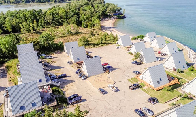 Booking now for fall and winter getaways and summer of 2025!! This Chalet is completely remodeled and has gorgeous panoramic views of Lake Michigan! This unit is in the exclusive beach block section of this fun family resort. Enjoy beautiful sunsets right on your deck! It no more than a 2 minute walk to the beach.