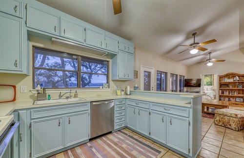 You're going to love your next vacation when you book a stay at Villa Marie, a gorgeous lake view home! This beautiful retreat features a spacious living room with a flatscreen cable TV and large windows overlooking the lake. Cook up some delicious meals in the full kitchen - it features lots of counter space and all the appliances and equipment you need to prepare something special! Gather the family around the attractive dining table to share some quality time with a few exciting board games! Spend your evenings on the porch watching the lake and a perfect Texas sunset!