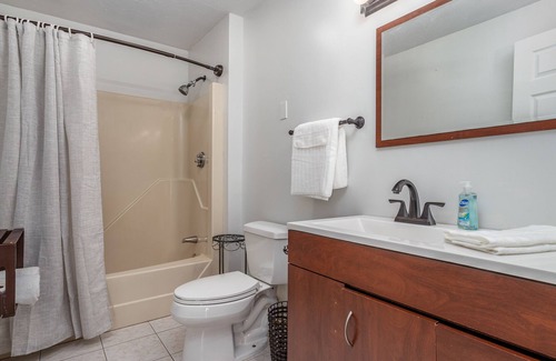 But that's not all. The lower section of the living area is a separate lockout unit with 2 bedrooms, 1 bath, and a full kitchen, perfect for larger groups or families. With high-speed WIFI, 2 washers, and 2 dryers, you'll have all the comforts of home at your fingertips.