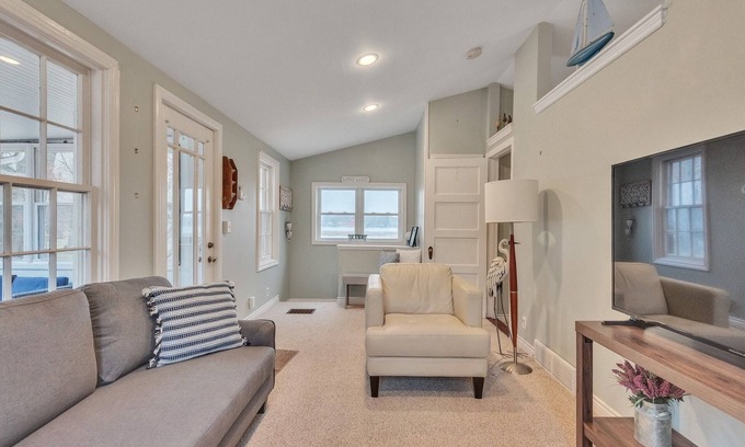 extra sleeper sofa in the living room to sleep 5 guests. 1.5 bathrooms and
