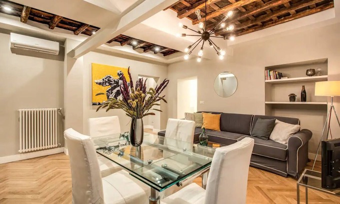 This apartment offers an ideal location in Rome, surrounded by vibrant pedestrian streets filled with restaurants and shops. Here’s a snapshot of its prime position and unique features:
