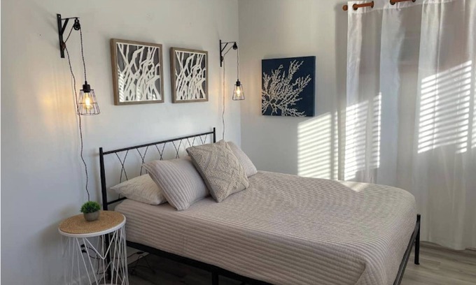 The kitchen is complete with a refrigerator, stove, and all the basic cooking pots, pans, and utensils that you will need to cook. a home cooked meal. Walk into the hallway from the main area and you will find two bedrooms at opposite sides of the house. The first bedroom has a double bed, closet with ample closet space, TV, air conditioning, and ceiling fan. The second bedroom was recently furnished with a new double bed, closet with ample closet space, TV, air conditioning, and ceiling fan. The bathroom is complete with a stall shower. Bathroom towels are provided, however, don't forget to pack your own beach towels! Wifi and internet are included. Another town right next door in Fire Island is the Pines, which is easily accessible by water taxi or a LONG romantic walk on the beach.