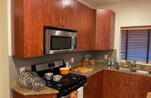 Luxury condo in the heart of the Armory District. Open floor plan and hung with actual works of art. Amazing 1 bedroom, 1 1/2 bath with huge kitchen, granite countertops, stainless steel appliances, hardwood floors, high ceilings, bedroom, dining table, sectional, fully furnished, jacuzzi tub, central air, off street parking, wheelchair accessible, dishwasher and laundry in unit. Wifi and fully furnished. Walking distance to the Armory and Federal Hill. Great energy in the place!