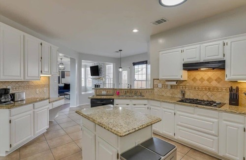 Our spacious home offers 5 bedrooms and 2.5 bathrooms and is equipped with every possible luxury you could ever desire, including an incredible pool in our large paradise backyard! The beautiful furniture and décor and the access to all the necessities will allow you to truly relax on your trip. You’ll be able to find some peace in a quiet neighborhood while still being able to quickly reach all the attractions in the Dallas-Fort Worth area . Our home will make your stay absolutely amazing!