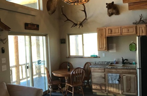 Beautiful cabin in the Big Horn Mountains surrounded by national forest. Two bedrooms and a large loft with three beds. Full size kitchen, bath and shower with lots of hot water, and laundry. Rustic decor and wood burning fireplace create a cozy