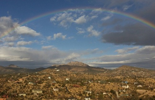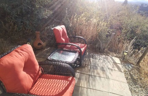 The huge 1550 square foot ground level mountain top rental is newly decorated, has a large living room with big flat screen TV that has 100's of channel choices, a library area with several books, and a brand-new full kitchen with all new appliances. The new kitchen is completely stocked with a microwave, fridge/freezer, filtered water from the fridge, coffee maker, coffee, toaster, pots, pans, dishes, etc and a kitchen table. The sectional is very comfortable with down filled cushions and pillows. There is a large bedroom with a new King bed with another flat screen TV, and a full bathroom with shower/tub. There is a washer and dryer room, along with an iron and ironing board. It has 2 entrances and is equipped with all of the amenities of home. It also offers 2 beautiful outdoor seating areas overlooking all the wonderful views that Prescott has to offer to give you the feeling of getting away from it all! WiFi is included and you are provided a list of the best local restaurants and coffee shops as well as hiking/biking trails. This rental is perfect for singles/couples/families.