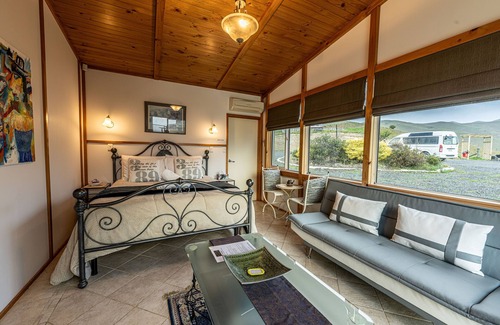 The Marlborough Suite beckons with its cozy queen-sized bed and a view that stretches beyond the lawn to embrace the ocean and the mountain ranges. The Cloudy Bay Suite and Ocean View Suite offer spacious retreats, each with a queen-sized bed, a sofa bed, and a private deck overlooking the rolling hills and the Cook Straits.