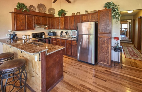 * Kitchen - granite counter tops, stainless appliances. All you need for cooking, including crock pot, coffee maker (drip), coffee grinder, coffee and creamer; blender, hand mixer, pie pans, cookie sheets, serving platters (including 2 large for Thanksgiving/ Christmas), hor doeuvres platters, spices, etc. Plenty of glass and dishware including wine glasses, beer steins, tumblers, martini glasses, etc.