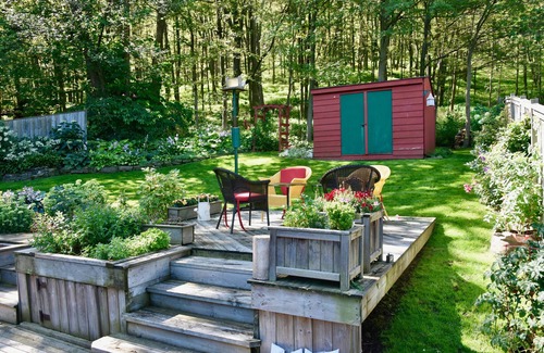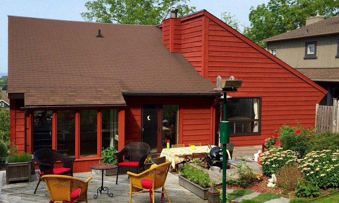 Located on the Niagara Wine Route, plan your wineries tour and relax in the spacious gardens. Five outdoor decks, including a hot tub and fire pit. One mile away from the famous Bruce Trail.