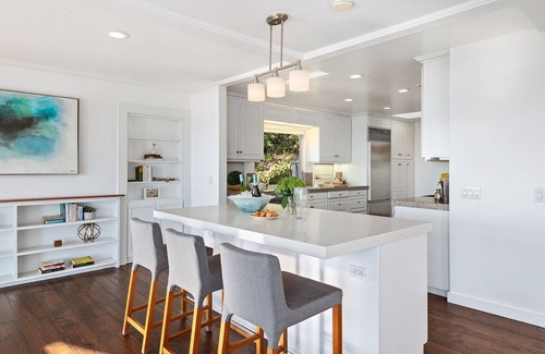 Perched on the hillside of what has become known as “America's Riviera,” the home's sweeping views are truly spectacular; the majestic Channel Islands add the dramatic punctuation to the vast panorama. The tri-level remodeled home is cheerful and bright, taking full advantage of the hillside location. On frequently clear days, it really does feel as though one could see forever!