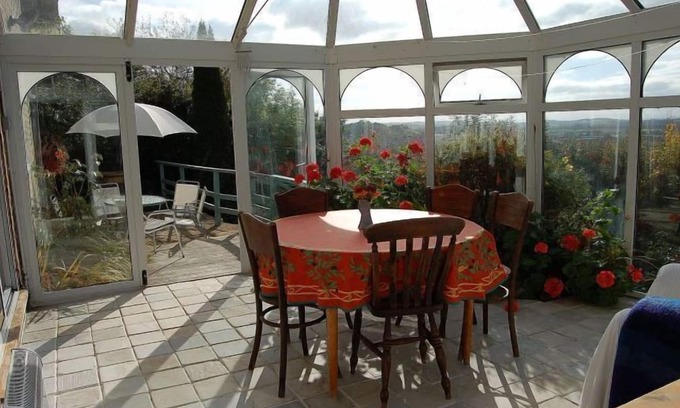 This lovely flat has a king sized bed in the cosy bedroom and a sofa bed in the living room for extra guests. The bathroom has a large shower, toilet and basin plus a washing machine. The well stocked kitchen has views over the Moors as you wash up or you can use the dishwasher. There is a gas hob, electric oven, microwave and fridge freezer. The living room has a comfy sofa, armchairs and Freeview TV, DVD and CD player. There is free WiFi. The conservatory has a dining table and chairs for four, plus a comfy arm chair. Outside there is a deck, patio and small lawn area to sit and watch the sunset and view. Because there are beautiful views, we do have quite a few steps down to and up to the apartment from the two entrances that we have to our property.