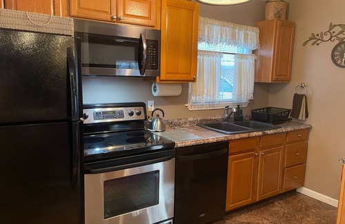 This is a Two story guest house, Separate from other part of home . It's a 2 Bedroom house ,with your own private entrance, Sleeps 6.. 1-Bedroom Has a Queen bed. 2nd Bedroom has Two Queen Beds.. All Bed linens and towels are provided. 1 bath has a full shower Bathroom and second bath is half bath with washer/dryer. A full kitchen with stove and microwave and all cooking utensils .Living room area and dining room area combined.. Parking right out side your door or several other areas available for parking.