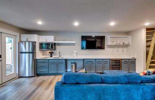 There is a great swimming pool with a childproof lockable fence. Sleep in one of 4 comfortable bedrooms, each with a LG smart TV. The kitchen has all the small appliances you need, including waffle make, toaster, airfryer and coffee maker. Step into the backyard and WHOA!!! there's a swimming pool, grill, firepit, and a whole other building. The secondary unit has a gaming and entertainment room with a full bathroom downstairs. Upstairs is private living space with a full kitchen and full bathroom.