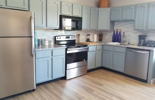The newly renovated 2 bedroom and 2 full bathroom apartment can easily accommodate groups of six. The completely updated kitchen has granite countertops, stainless steel appliances, and a dishwasher. Convenient in-house washer and dryer available for extended stays.