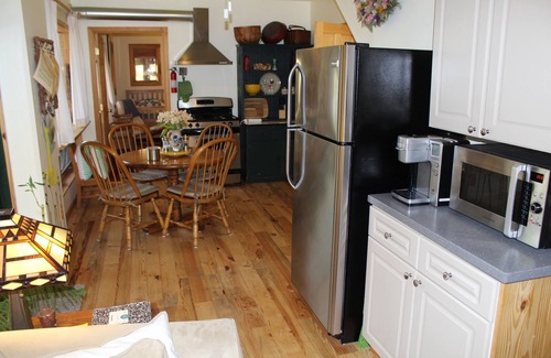 Have a private patio to use for meals with easy access to the dock where there are a canoe and three kayaks available for use. Additionally, there is a fire pit that overlooks the river. With a coffee maker (Cuisinart K style) and basic supplies, guests can settle right in for a cozy stay.