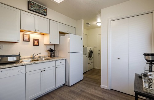 The beautifully updated kitchen is fully stocked with all the basic spices and everything you would need to fix an on-the-go meal or cook for your entire family. The coffee bar is always stocked with fresh ground high end Starbucks or New Mexico Piñon coffee for your enjoyment.
