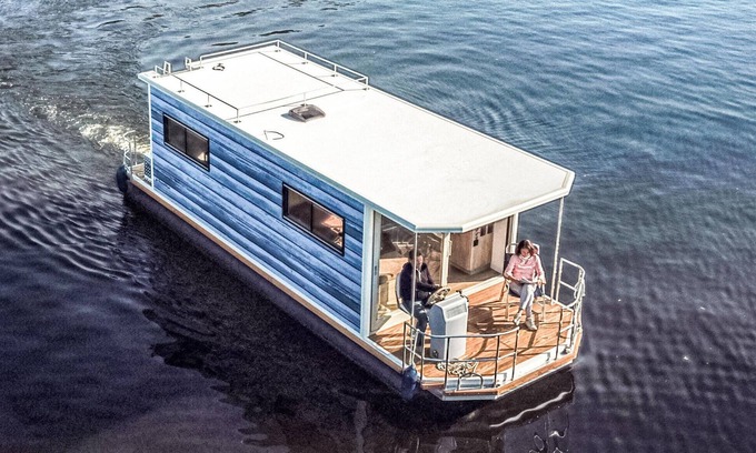 Your houseboat is modern and comfortably furnished and can be rented without a licence. An outside ladder at the stern takes you to the roof terrace, which can be used as a sunbathing area. The well thought-out room concept offers plenty of space in a very small area - there is a bedroom with a double bed and the seating area in the living area can be converted into a double bed. A solar system on the roof ensures the energy supply.