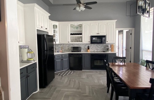 This home is big enough for 2 separate families to enjoy with privacy. The upstairs living area has a full kitchen, master suite with jacuzzi tub, 2 bedrooms with queen beds and another full bathroom.
