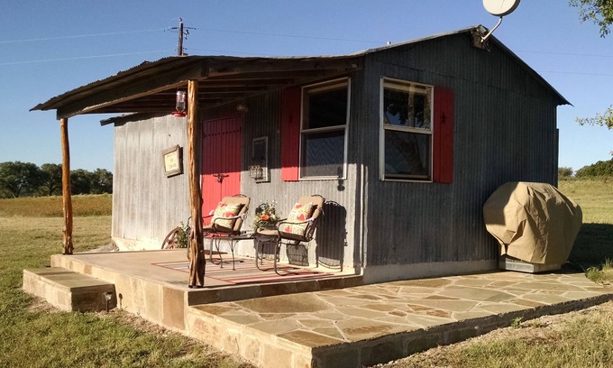 Secluded Hill Country get-away cabin on private ranch, central to LBJ State & National Parks, more than 20 Wineries, Distilleries & Breweries within 10 minutes. This cozy two room cabin features a private bathroom with Texas Sized antique bathtub / shower. Kitchenette complete with microwave, refrigerator, flatware, stemware, K-Cup brewer with an assortment of coffees teas and cocoa.